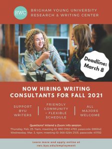 Posted February 22, 2021 by trinah under Consulting, On Campus, Paid, Writing